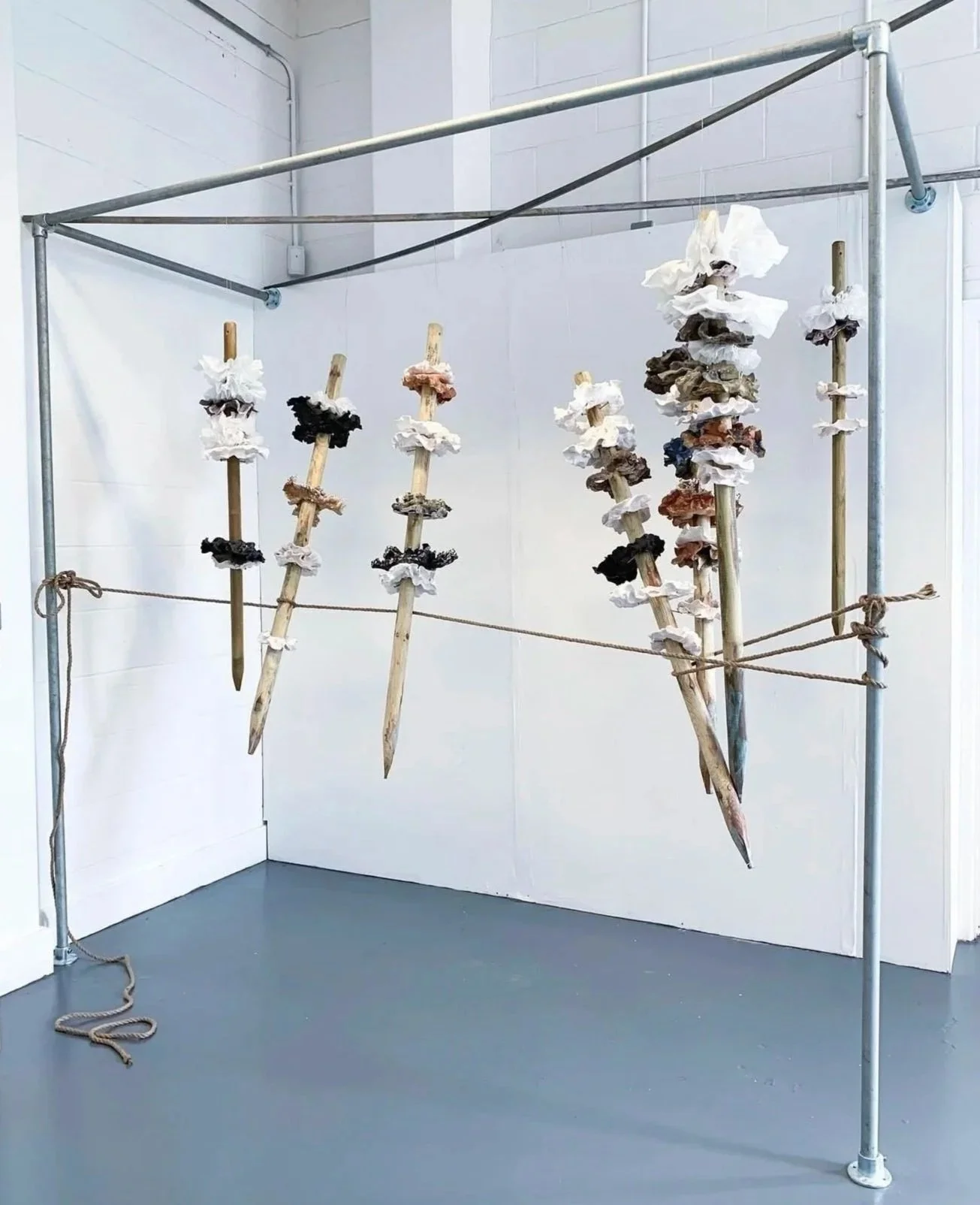Exhibited installation showcasing multiple pieces together in situ as an ensemble: