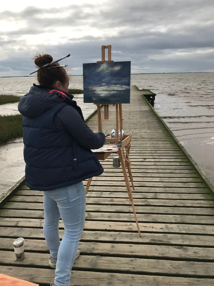 Working predominantly from observation, Alexandra relishes painting en plein air where she endeavours to capture both the stillness and energy of the landscape around her. She is particularly drawn to the shifts in light at dawn and twilight, and during the brewing of or break in storms.